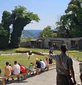 Bei bestem Sommerwetter ging es für die Kinder und vier Betreuern des Ortsvereins mit dem Bus nach Riedenburg. Der erste Halt erfolgte an der Sommer-Rodelbahn „Altmühlbob“. Dort durften sich die Mädchen und Jungen den Wind bei den Fahrten mit den Rodeln um die Nase wehen lassen. Sie konnten zwischen der normalen Sommer-Rodelbahn und dem rasanten Speed-Bob wählen, oder am anliegenden Spielplatz toben. Ein weiterer Höhepunkt war die Flugvorführung des Falkenhof Rosenburg. Nach kurzer Einweisung der Falkner, nahmen die mutigen Kinder direkt am Hauptplatz ihre Plätze auf den Baumstämmen ein, um die Flugkünste der Raubvögel hautnah zu erleben. Es war für alle sehr beeindruckend, Falken, Adler, Bussarde, Milane, Eulen und Geier aus nächster Nähe beobachten zu können und interessante Einblicke in die Aufgabenvielfalt des Falkenhofes und der Arbeit mit den über 40 Greifvögeln zu erhalten. Nach der tollen Flugshow hatten die Kinder die Möglichkeit, die Rosenburg und das Museum auf eigene Faust zu erkunden. Abends ging es mit dem Bus und vielen zufriedenen Kindern wieder in die Heimat.