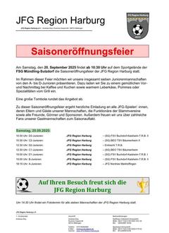 Eine Info schon vorgemerkt. Am 20.09. findet die alljährliche Saisoneröffnungsfeier der JFG in diesem Jahr in Mündling statt.