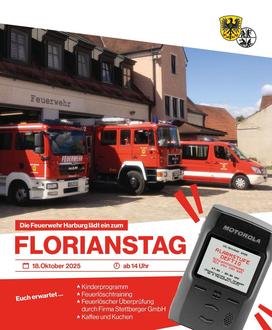 Die Feuerwehr Harburg lädt am 18.10.2025 von 14:00 – 17:00 Uhr „Jung und Alt“ zum Florianstag ins Feuerwehrhaus ein. An diesem Nachmittag wollen wir uns Ihnen vorstellen und vielleicht auch weiteres Interesse bei Ihnen wecken. Wir bieten Ihnen die Möglichkeit, ein Feuer an unserem Feuerlöschtrainer zu löschen. Zusätzlich wird die Fa. Stettberger Brandschutz vor Ort sein und Ihnen die Möglichkeit bieten, ihre alten Feuerlöscher zu überprüfen und wieder auf Stand zu bringen oder ggf. einen neuen zu erwerben. Sollten Sie noch Fragen hinsichtlich Feuermeldern haben, sind Sie hier gut beraten.