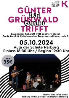 Am 05.10.2024 tritt er mit der Band RAD GUMBO in der Aula der GMS Harburg, unter dem Motto „Bayerisches Kabarett trifft Southern Blues! Coole Musik & Ablachen ohne Ende – was will man mehr?“, auf. Nutzen Sie die Chance um bei einer seiner letzten Veranstaltungen dabei zu sein.