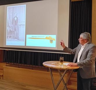 Melchior Meyr (1810-1871), den „Klassiker des Rieses“, stellte Dr. Wilfried Sponsel beim Harburger Kulturherbst im „Straussen-Saal“ vor. Er schilderte ausführlich und anschaulich den Bildungsgang, das Schaffen und die Lebensführung des 1810 in Ehringen bei Wallerstein geborenen Dichters. Dieser arbeitete als fleißiger und erfolgreicher Schriftsteller in München, Erlangen, Heidelberg und Berlin; dabei trat er vor allem als Verfasser von Romanen und historischen Dramen sowie philosophischen Abhandlungen hervorf. Geistig bewegte er sich in den Strömungen des Deutschen Idealismus und der Romantik und pflegte den Gedankenaustausch mit vielen der damaligen Größen. Bleibende literarische Geltung verschaffte sich Meyr mit der „Ethnographie des Rieses“, einem für Volkskundler und Heimatforscher unverzichtbaren Aufsatz, sowie mit seinen acht „Erzählungen aus dem Ries“ aus der Gattung der Dorfgeschichten. Nach Dr. Sponsels Empfehlung lohnt sich ihre Lektüre auch heute noch unbedingt. An Melchior Meyr wird an seinem Geburtshaus in Ehringen, am Reimlinger Tor in Nördlingen und an seinem Grab auf dem Münchner Südfriedhof erinnert. Eine Gedenktafel für ihn befindet sich auch am Wohnhaus seiner Eltern in Ebermergen, wo er sich häufig aufhielt und so manche literarische Inspiration empfing. (Hl.)