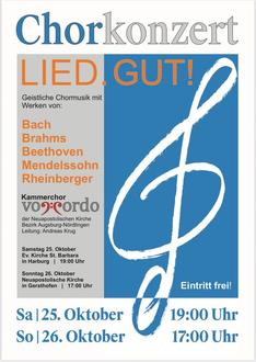 | 19:00 Uhr | Konzert des neuapostolischen Kammerchores in der St. Barbara Kirche in Harburg |