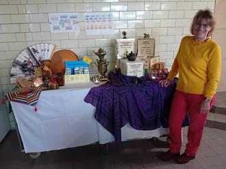 Höhepunkt war am Ende der über 90minütigen Veranstaltung eine ostfriesische Teezeremonie mit Kluntje, Wulkje und dem „Teezeremoniebeendigungslöffel“! In Ostfriesland, so lernten wir, beendet man nach 3 Tassen Tee mit Kandis und Sahne den Genuss damit, dass man seinen Teelöffel in die leere Tasse stellt. Zum ostfriesischen Tee gab es schwäbische Allerseelenbrezen.