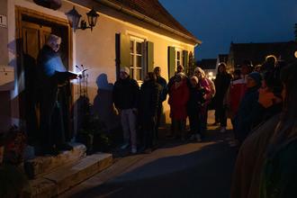 Die Führung wurde durch die Harburger Nachtwächter mit Laternen und Hellebarden eindrucksvoll in Szene gesetzt. Mit Liedern und historischen Geschichten begleiteten sie die Gruppe und sorgten für die passende Atmosphäre. Auch Laienschauspieler waren in Kostümen als Hexen, Bettler, Richter und Gefangene unterwegs. Sie spielten einzelne Szenen nach, die Gabi Steger lebendig erzählte und so die historischen Ereignisse anschaulich vermittelte.