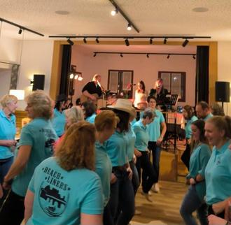 Der Abend startete gleich mit 13 Songs, gekonnt interpretiert von der Band „DIE UNIT“, die die Harburger Beach Liners sich in den Bildungswerk-Kursen und Übungsabenden erarbeitet haben. Das war auch der Wunsch, einfach einmal das Geübte mit Livemusik in schöner Atmosphäre zu tanzen. Die Musiker Christoph, Vroni und Franz verbreiteten gute Laune und das Tanzen machte richtig Spaß, wenn auch der eine oder andere erst wieder nach der Schrittfolge schauen musste. Nach einem Workshop unter der Leitung von Silvia Elischer, bei der alle Anwesenden eingeladen waren, den Little Wagon wheel zu lernen und anschließender Unterhaltungsmusik für die nicht Line Dancer kam der zweite Teil mit Line Dance Stücken für die „Profis“. Einfach auch schön zum Zuschauen. Unermüdlich spielten die Musiker und luden dazu ein, sich noch besonders schöne Tanzstücke zu wünschen. Ein wunderschöner Tanzabend, den wir gerne wiederholen werden. Ein herzliches Dankeschön am Ende noch an die Band, den Kursleiterinnen Silvia Elischer und Monika Korhammer und dem Gasthaus Straußen für die gute Bewirtung im schönen Saal.