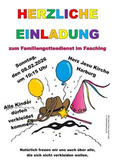 | 10:15 Uhr | (HA) | Familien-Wort-Gottes-Feier Fasching für die Pfarreiengemeinschaft, alle Kinder dürfen verkleidet kommen |