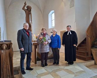 Unser Foto zeigt von links: Georg Niedermeier, Ingeborg Seiler, Ingrid Eicher und Pfarrer Friedrich Martin