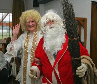 Im Anschluß wurde das Christkind willkommen geheißen. Es richtete einen festlichen Weihnachtsgruß an alle anwesenden Mitglieder. Kurz darauf trat der Nikolaus von draußen ein. Er begrüßte die Gäste und stellte einigen Mitgliedern die Frage nach ihrem schönsten Erlebnis im Jahr 2025. Die Antworten waren hunorvoll und sorgten für eine heitere Stimmung. Zum Abschluss hielt der Nikolaus eine kleine Weihnachtsansprache, bevor Kaffee und Kuchen serviert wurden.