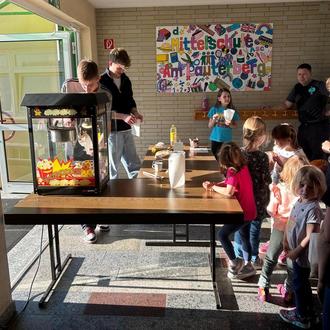 Zum Abschluss gab es Popcorn für alle. Und ganz still und klammheimlich hat unsere Ida ihre echte Schildkröte geholt, die dann bewundert und - wer sich getraut hat - auch gestreichelt werden durfte.