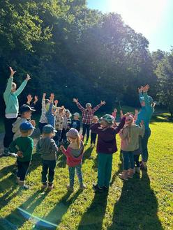 So hat das Wolkenkuckucksheim passend zu ihrem Bienenprojekt Familie Kirstner und ihre Imkerei in Tiefenlauter besucht. Die Blumeninsel hat für eine Woche ihren Gruppenraum mit dem Wald getauscht und rund um die Lauterburg haben die Kinder den Wald wieder mit all ihren Sinnen erlebt.