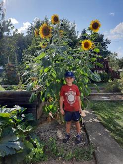 Ein begeisterter Leser, Enno Baier, hat die Samen ausgebracht und über den Sommer fleißig gegossen und gepflegt. Das Ergebnis sind wundervolle Sonnenblumen, über die sich mit Sicherheit nicht nur so manche Biene freut…