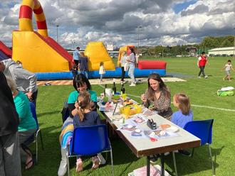 Zu den vielen Attraktionen zählten unter anderem Leitergolf, Kinderschminken, ein Geschicklichkeitslauf, Fußball-Dart, ein Barfußpfad, Torwandschießen, Bubble-Soccer sowie verschiedene Ratespiele. Auch die Hindernisbahn und die beiden Hüpfburgen sorgten bei den Kindern für strahlende Gesichter und gute Stimmung.