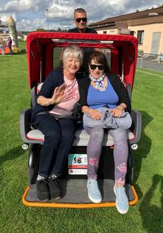 Sichtbare Freude war bei den beiden Rikscha-Fahrgästen zu verspüren.