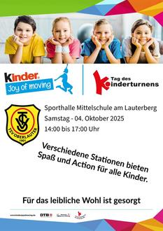 Auch in diesem Jahr veranstaltet der TSV Oberlauter wieder den beliebten Tag des Kinderturnens. Alle Kinder aus Lautertal und den umliegenden Gemeinden sind herzlich eingeladen, dabei zu sein.