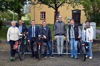 Von links: „Kilometerkönigin Sigrid Brunner, Martin Stingl (Stellvertretender Landrat); Karl Kolb (Erster Bürgermeister der Gemeinde Lautertal); Gemeinderat „Carlo“ Papenfuß; Marita Nehring (ÖPNV-Beauftragte beim Landratsamt und Organisatorin des „Stadtradelns“); Pfarrer Ronald Henke und Käthe Kolb (Mitgliedin des Kirchenvorstands).