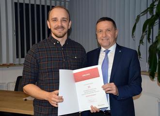 Lautertals Erster Bürgermeister Karl Kolb überreichte die Anerkennungsurkunde und die Anstecknadel des Bayerischen Roten Kreuzes und bedankte sich mit einem Lautertaler Geschenkgutschein.