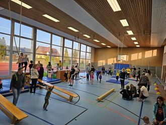 Am Samstag, den 09. November 2024, verwandelte sich die Turnhalle der Mittelschule in Lautertal in ein echtes Bewegungsparadies! Der TSV Oberlauter lud zum Tag des Kinderturnens ein und konnte sich über eine Vielzahl strahlender Gesichter freuen. Schon ab 14 Uhr kamen zahlreiche Kinder und Familien, um an den verschiedenen Stationen, darunter Schwebebalken, Reck, und Seile, das Kinderturnen auszuprobieren. Ein besonderes Highlight war die große Kletterstation mit Bällen und weiteren Turnutensilien, die den Kindern viel Raum zum Entdecken und Austoben bot.