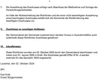 Der Gemeinderat hat die Neufassung seiner Sportförderrichtlinien zum 01.01.2025 beschlossen.