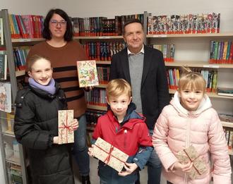 Die Gewinner des Preisausschreibens in der Bücherei stehen nun fest! Maximilian Belz, Pauline Seuß und Klara-Sophie Gieck dürfen sich über einen Kinogutschein in Höhe von jeweils 15 Euro freuen. Unter vielen Einsendungen hat der Erste Bürgermeister Karl Kolb die Gewinner gezogen. Der Lösungssatz lautete: „Ich lese gerne!“ Das haben alle Kinder bewiesen, die die Fragen zur Buchreihe „Die Schule der magischen Tiere“ beantworten konnten.