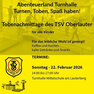 Nach dem gelungenen Start ins neue Jahr lädt der TSV Oberlauter alle Familien herzlich zum zweiten Tobenachmittag 2026 ein.