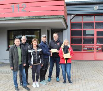 Strahlende Gesichter vor dem Feuerwehrhaus (von links): Karl Kolb, Ulrike Engel, Andrea Sommer, Willi Sommer, Alexander Escher und Katrin Grosch