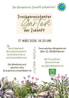 Im letzten Jahr hat sich der Bürgerkreis Umwelt Lautertal mit den umliegenden Gemeinden zum Bürgerkreis Zukunft Coburg-Land zusammengeschlossen. Im Rahmen dieser Kooperation können wir noch mehr interessante Veranstaltungen anbieten. Daher möchten wir Sie herzlich einladen, zum Start der Gartensaison, die Veranstaltung am 17. März 2026, um 18.30 Uhr im Feuerwehrhaus Moggenbrunn zu besuchen.