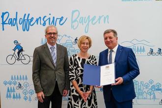 Die Gemeinde Kötz hat sich mit der innterkommunalen Radwegeverbindung Großkötz – Schneckenhofen für die Radwegoffensive des Bay. Staatsministerium Wohnen, Bau und Verkehr beworben. Am 01.06.2023 wurde durch Herrn Minister Christian Bernreiter die Aufnahmeurkunde hierzu überreicht. Lediglich 17 Kommunen in Bayern konnten berücksichtigt werden. Umso mehr freut es mich, dass die Gemeinde Kötz in dieses Förderprogramm aufgenommen wurde. Durch die Aufnahme wird der Radweg mit 80 % gefördert. Die Besonderheit dieses Förderprogrammes ist, dass hier auch der Ausbau von bereits bestehenden Feld- und Waldwegen berücksichtigt wird. Nachdem zwischen den beiden Gemarkungen Großkötz und Schneckenhofen ein durchgängiger Feld- und Waldweg entlang des Apostelgehölzes führt, konnten wir hier mit unserem Projekt überzeugen. Ich freue mich, dass wir nun für die Radfahrer ohne weiteren Landverbrauch, einen sicheren Radweg bauen, der an das bestehende Radwegenetz anbindet.