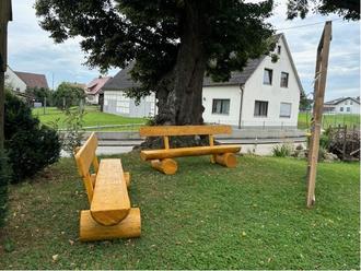 An der „Alten Linde“ laden 2 gemütliche Bänke zur Rast ein. Mein Dank geht an Franz Gruber, der aus dem diesjährigen Maibaum für die Allgemeinheit 2 Bänke errichtet hat.