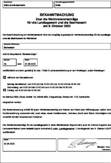 über die Wahlkreisvorschläge für die Landtagswahl und die Bezirkswahl am 8. Oktober 2023