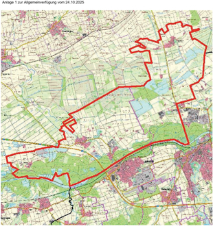 | 1. | Am 23.10.2025 wurde im Landkreis Alb-Donau-Kreis ein Ausbruch der hochpathogenen Geflügelpest amtlich festgestellt. Durch das Landratsamt Alb-Donau-Kreis wurde am 23.10.2025 eine Überwachungszone (ehemals Beobachtungsgebiet) mit einem Radius von 10 km um den Seuchenbestand (Koordinaten (X/Y) 12.74282 / 48.59682) festgelegt. Der 10 km Radius ragt über die Landkreisgrenzen des Alb-Donau-Kreises ca. 3 Kilometer in den nördlichen Bereich des Landkreises Günzburg hinein. Im Landkreis Günzburg wird daher eine ergänzende Überwachungszone (ehem. Beobachtungsgebiet) festgelegt, soweit sich diese auf dem Gebiet des Landkreises Günzburg befindet. Die Anlage 1 mit Darstellung der Überwachungszone ist Teil dieser Allgemeinverfügung. |