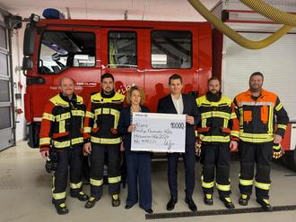 In der Gemeinde Kötz wurde die freiwillige Feuerwehr mit 10.000 Euro aus dem Hochwasser-Spendentopf der Allianz bedacht. Die Spende wird dazu beitragen, Ausrüstung für zukünftige Hochwassereinsätze zu beschaffen und/oder Ausrüstung zu ersetzen, die während des Einsatzes beschädigt wurde. Allianz Vertriebsleiter Martin Wengenmayer hatte die freiwillige Feuerwehr Kötz nominiert und überreichte den Spendenscheck jetzt an Sabine Ertle, Bürgermeisterin der Gemeinde Kötz. „Es ist mir ein Herzensanliegen, lokale Hilfs- und Rettungsdienste zu unterstützen“, sagt Wengenmayer. „Die Einsatzkräfte haben beim Hochwasser im Juni hier vor Ort immense Hilfe geleistet. Deshalb unterstützen wir die Feuerwehr gerne dabei, auch in Zukunft ihre wichtige Arbeit leisten zu können.“