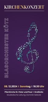 das Blasorchester Kötz möchte Sie recht herzlich zu seinem Kirchenkonzert am Sonntag, den 08.12.2024 um 16:30 Uhr in der Pfarrkirche St. Peter und Paul in Kötz einladen.