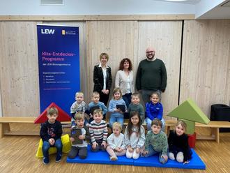 Im Kindergarten St. Nikolaus aus Kleinkötz können die Kleinsten künftig ganz große Schritte in Richtung Zukunft machen. Denn Stefan Stölzle, Mitarbeiter der LEW, übergab drei iPads an die Kita-Leitung Klaudia Schwarz und die Bürgermeisterin Sabine Ertle. Der Kindergarten St. Nikolaus hatte sich im Rahmen des KITA-Entdecker-Programms der LEW-Bildungsinitiative 3malE für die iPads beworben und per Los den Zuschlag erhalten. Die iPads ermöglichen den Vorschulkindern einen pädagogisch begleiteten Zugang zur digitalen Welt mit ihren kreativen und lehrreichen Möglichkeiten. Tablets und Internet gehören längst zum Alltag und gewinnen in der Lern- und Arbeitswelt weiter an Bedeutung. Bereits im Vorschulalter sammeln Kinder erste Erfahrungen mit digitalen Medien. Die iPads unterstützen dabei nicht nur die medienpädagogische Arbeit mit den Kindern, sondern erleichterten auch die administrative und pädagogische Arbeit der Fachkräfte in der Kita.