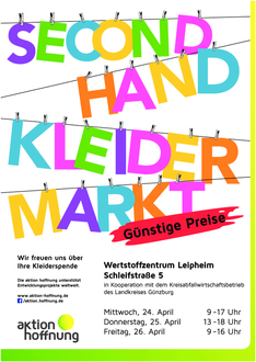 Während des Marktes besteht die Möglichkeit, gut erhaltene, saubere und modische Kleidung abzugeben. Der Markt wird in Zusammenarbeit mit dem Kreisabfallwirtschaftsbetrieb des Landkreises Günzburg veranstaltet.