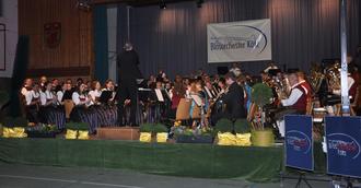 „Film ab“ hieß es dann für ein mit Hingabe musizierendes großes Blasorchester und seinen Regisseur Dominik Seibold. Gemeinsam mit der Jugendkapelle wurde Hans Zimmers „At World’s End“ aus „Fluch der Karibik“ in klanggewaltiger Fassung dargeboten. Dabei bewegten musikalische Leidenschaft, Solo- und aufwühlender Chorgesang und die imposante Anzahl von fast 100 Instrumentalisten. Danach entführten Themen aus „Herr der Ringe“, die Gedenkkomposition „Hymn to the Fallen“ sowie „Ennio Morricones Klassiker-Medley“ in emotionale Klangwelten, die - von Marcus Keller gewohnt empathisch moderiert - mit den Selections aus „The Greatest Showman“ ein fulminantes Finale bildeten. Unter großem Applaus des Publikums setzten glänzend aufgelegte Akteure mit „Miss Marple“ und „Die tollkühnen Männer in ihren fliegenden Kisten“ einen brillanten Schlussakkord.