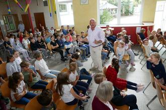 "Es gibt nichts Gutes, außer man tut es." Mit ihrem Spendenlauf im vergangenen Mai konnte die Schulfamilie weit über stolze 16.000 € sammeln. Durch einen Teil des Geldes konnte nun eine Schule in Madagaskar, die durch einen Taifun zerstört worden war, wieder aufgebaut werden. Ermöglicht wurde dies durch die Kooperation mit dem Verein "Menschenfreude" sowie unserem Landrat Stefan Rössle, die mit großem Einsatz das Projekt vor Ort begleiteten. Das Ergebnis dieses Aufbaus stellte der Verein, vertreten durch den Vorsitzenden Jürgen Pertek den Schülerinnen und Schülern, den Lehrkräften, zahlreichen Ehrengästen sowie interessierten Eltern vor. Dabei erfuhr das Publikum auch Einiges über die Lebensumstände der dortigen Bevölkerung, wie z. B. dass es völlig normal ist, dass ein Schulweg rund 4 Stunden dauert - nur der einfache Weg, zu Fuß und dabei oft barfuß! Im Anschluss daran erhielt jede am Spendenlauf beteiligte Klasse eine Urkunde, vor allem aber die Erkenntnis, dass, "wenn viele kleine Leute viele kleine Schritte tun", sie die Welt durchaus verändern können!