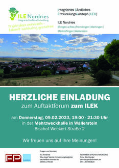 Um für die Zukunft gerüstet zu sein, arbeiten die Gemeinden Ehingen a.Ries, Fremdingen, Maihingen, Marktoffingen und Wallerstein gemeinsam mit den Planungsbüros PLANWERK Stadtentwicklung und Dr. Fruhmann & Partner an der Neuaufstellung eines Integrierten Ländlichen Entwicklungskonzeptes (ILEK). Bereits seit 2013 sind die fünf Kommunen als Interkommunale Kooperation ILE Nordries miteinander vernetzt. Um die Herausforderungen für den ländlichen Raum weiterhin gemeinsam anzugehen und die Zukunft der Region erfolgreich zu gestalten, ist es an der Zeit, die bisherige Arbeit der ILE Nordries zu reflektieren, neue Weichen zu stellen und im Rahmen der Neuaufstellung einen erfolgssichernden Fahrplan festzulegen.