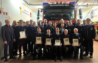 Für die höchste Übungsteilnahme wurde Sebastian Haas, Michael Hach und Paul Mielich ausgezeichnet, die an allen Übungen anwesend waren. Kommandant Christoph Mayer wurde für 25-jährigen aktiven Dienst vom Freistaat Bayern geehrt. Für langjährige Mitgliedschaft im Feuerwehrverein wurden geehrt: Karl Huber jun. (25 Jahre), Franz Leberle (50), Georg Steinheber (60) und Ehrenkommandant Vitus Wolf (60).