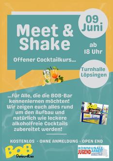 Komm am 9. Juni ab 18 Uhr zum „Meet & Shake“ nach Löpsingen an die Turnhalle. Die Aktion BOB stellt dort die alkoholfreie BOB-Cocktailbar vor, die von Vereinen, Verbänden, Jugendtreffs, Firmen und Schulen für eigene Events ausgeliehen werden kann. Neben Infos zum Auf- und Abbau gibt es den ganzen Abend die Gelegenheit zum Mixen von alkoholfreien Cocktails. Ein Profi zeigt allen Interessierten wie es geht. Es ist keine Anmeldung notwendig.