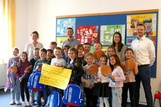 So lautete die Frage, mit der sich Schülerinnen und Schüler der Marktoffinger Grundschule beim „Schwäbischen Team-Wettbewerb Mathematik 2024“ auseinandersetzen. In Dreierteams bearbeiteten die Drittklässler die Aufgabe und gestalteten zu ihrem Lösungsweg ein Plakat, das sie im Anschluss präsentierten. Zunächst auf Schulebene, dann im Kreisentscheid und anschließend in ganz Schwaben treten die besten Teams gegeneinander an. Dabei geht es um mathematische Fähigkeiten. Genauso wichtig sind aber Kommunikation, Teamfähigkeit und Präsentation von Lösungswegen. Die Raiffeisen- Volksbank sponserte allen Schülern ein Mitmachgeschenk und gratulierte den Marktoffinger Schulsiegern Frido Meyer, Celine Mayer und Emil Liebhard.