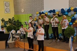 Im festlichen Ambiente nahmen die elegant gekleideten Jugendlichen stolz ihre Abschlusszeugnisse sowie einen symbolischen Schlüssel in Empfang und präsentierten ein selbst zusammengeschnittenes Reel über ihre gesamte Schulzeit, das viel Beifall fand. Musikalische Einlagen, wie ein Marsch der Bläsergruppe der Moll-Berczy-Mittelschule, Klavierstücke von Mathilda Hahnemann (Klasse 7b) und ein von den Sechstklässlern einstudierter Rap zum Lied „Wildberry Lillet“ rundeten den feierlichen Abend stimmungsvoll ab.