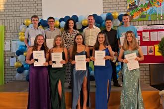 Anschließend fand die Ehrung der Klassenbesten mit einer kleinen Geschenkübergabe durch den Elternbeirat, vertreten durch die beiden Vorsitzenden Bettina Westphal und Markus Lütke Brintrup statt.