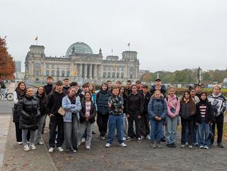 32 Schülerinnen und Schüler der beiden 9. Klassen der Moll-Berczy-Mittelschule Wallerstein machten sich Mitte Oktober mit dem ICE auf den Weg in die Bundeshauptstadt. Bei etwas durchmischtem Wetter lag ein straffes Programm vor ihnen. Neben Spaßigem wie Bowling oder Madame Tussauds stand viel Bildung auf dem Plan, wie z. B. der Besuch mehrerer Museen, der Gedenkstätte Hohenschönhausen und als ein Höhepunkt des Bundestages. Dorthin hatte der Bundestagsabgeordnete Ulrich Lange eingeladen, den die Schülerinnen und Schüler auch persönlich kennenlernen durften. Aber alleine die Großstadt Berlin war für die Jugendlichen eine große Erfahrung. Viele fuhren zum ersten Mal U- oder S-Bahn. In Kleingruppen lernten sie, sich in den Stadtvierteln zu orientieren. In diesen fünf Tagen konnten die Teilnehmenden nicht nur viel lernen, sie wuchsen auch in der Klassengemeinschaft zusammen.