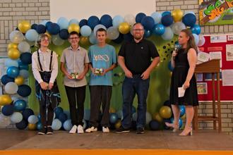 Anschließend fand die Ehrung der Klassenbesten mit einer kleinen Geschenkübergabe durch den Elternbeirat, vertreten durch die beiden Vorsitzenden Bettina Westphal und Markus Lütke Brintrup statt.
