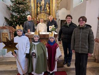 In einem Grußwort dankte der 2. Bürgermeister Wolfgang Beyer den Sternsingern für die großartige Aktion „Kinder helfen Kinder“, dass Hoffnung und Zuversicht das Leid und die Ungerechtigkeit in der einen Welt, in der wir alle leben, zum Positiven sich ändert.. und übergab gleichzeitig eine großzügige Spende in die Sammeldosen der Sternsinger.