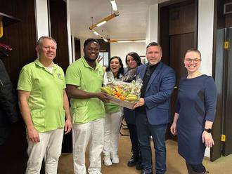 So konnte ich - gemeinsam mit Landrat Sebastian Straubel - Frau Gulmira Stoll in der Praxis von Frau Dr. Gabriele Abele-Mayer begrüßen. Sie ist die erste Medizin-Stipendiatin des Landkreises Coburg und mit ihrer Stelle in Ahorn nun auf der Zielgeraden ihrer Ausbildung zur Fachärztin für Allgemeinmedizin eingebogen.