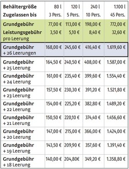 Pro Leerung ist hier die Leistungsgebühr Restabfall zu zahlen.