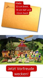 Das liebevoll gezeichnete 3D-Kraftkartonmodell ist beides: Ein Adventskalender mit 24 Figuren zum Ausstanzen und Einsetzen, und eine heimatliche Weihnachtskrippe aus Ahorn, mit dem Ensemble der Alten Schäferei im Vordergrund und der Veste Coburg im Hintergrund. In Deutschland gefertigt, fsc-zertifiziert, stabil und versandfertig im (für eine Begleitkarte oder -Brief noch offenen) Versandkarton.