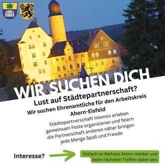 Sie haben auch Lust im Arbeitskreis Ahorn-Eisfeld zu engagieren und die Partnerschaft leben zu lassen? Dann schnuppern Sie doch am Umzug in Eisfeld einfach einmal rein und überzeugen Sie sich persönlich von dert gelebten Partnerschaft Ahorn-Eisfeld. Wir freuen uns über alle neuen Ahorner, die die Partnerschaft im Arbeitskreis mit leben lassen möchten und gemeinsam tolle Dinge auf die Beine stellen möchten.