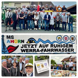 Ein weiteres Zeichen unserer lebendigen Partnerschaft setzten wir beim Eisfelder Kuhschwanzfest 2025. Die MS Ahorn, bemannt mit Mitgliedern des Gemeinderats, der Verwaltung sowie der Feuerwehr Schorkendorf-Eicha, war dort fest verankert – zumindest symbolisch. Es war uns eine Freude, beim Landgang die herzliche Gastfreundschaft unserer Nachbarn zu genießen, gemeinsam zu feiern und die Verbindung zwischen Ahorn und Eisfeld weiter zu stärken.